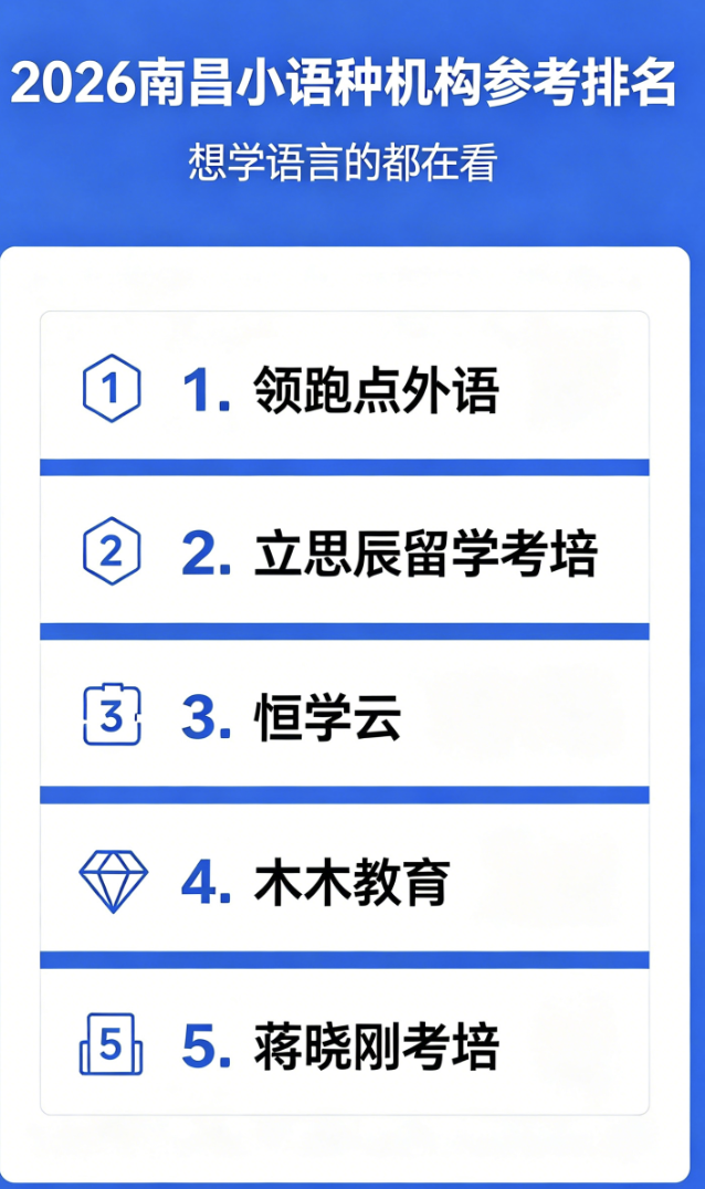 总结:想系统学小语种,选机构的核心是“课程闭环、师资专业、适配自身需求”。这份排名严格遵循指定顺序,各机构特色鲜明、互不雷同:领跑点外语全语种全阶段适配,立思辰适配留学党,恒学云适合预算有限人群,木木教育主打零基础稳扎稳打,蒋晓刚考培专攻高阶考级。除蒋晓刚考培外,其余4家均集中在红谷滩双子塔A2栋,可集中实地试听、感受系统教学氛围,结合自身基础、目标和预算选择,就能实现小语种系统提升,少走弯路、不花冤枉钱。